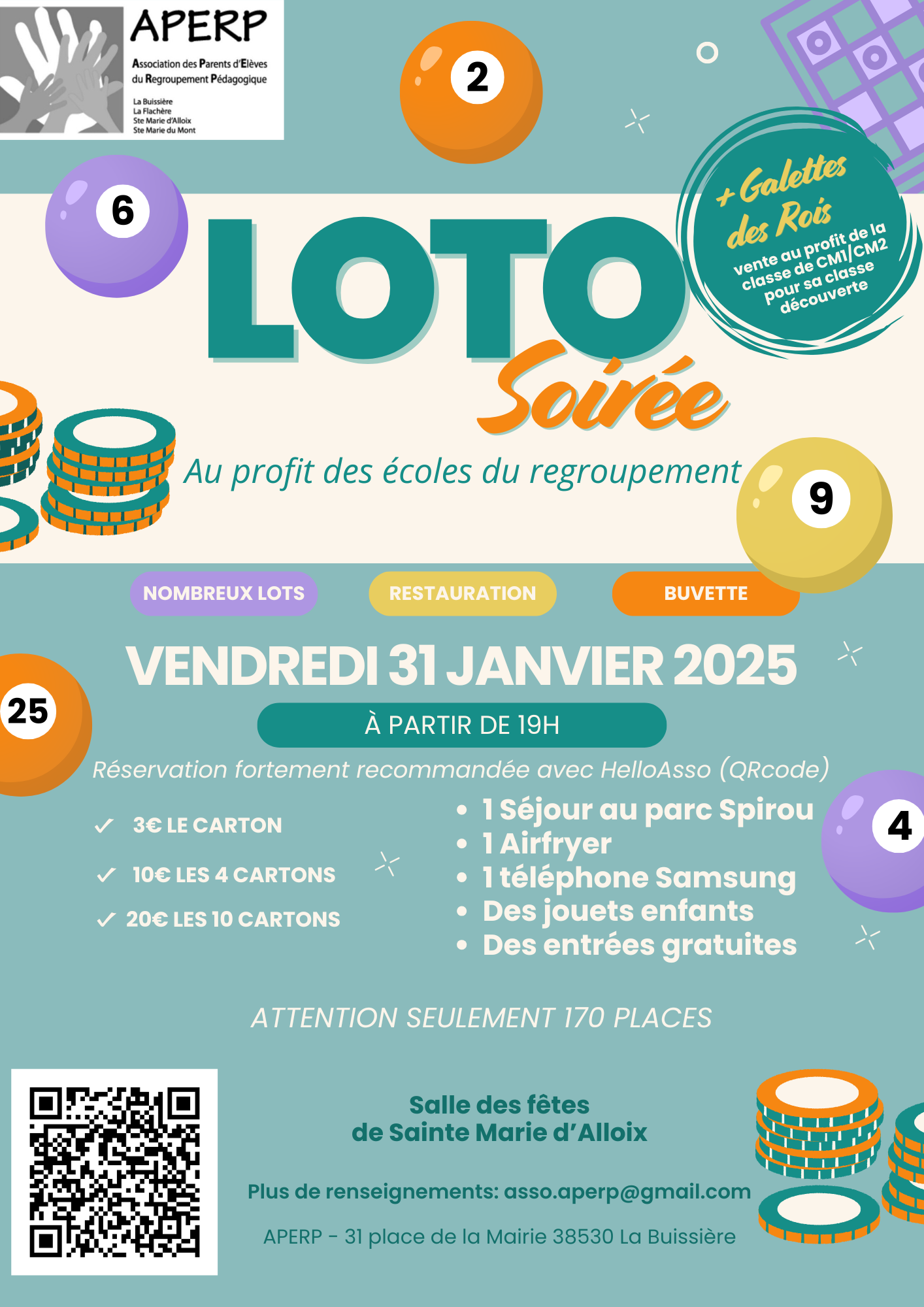 ⚠️ Attention, places limitées à 170 personnes ! Réservez dès maintenant via HelloAsso (QR code sur l’affiche).